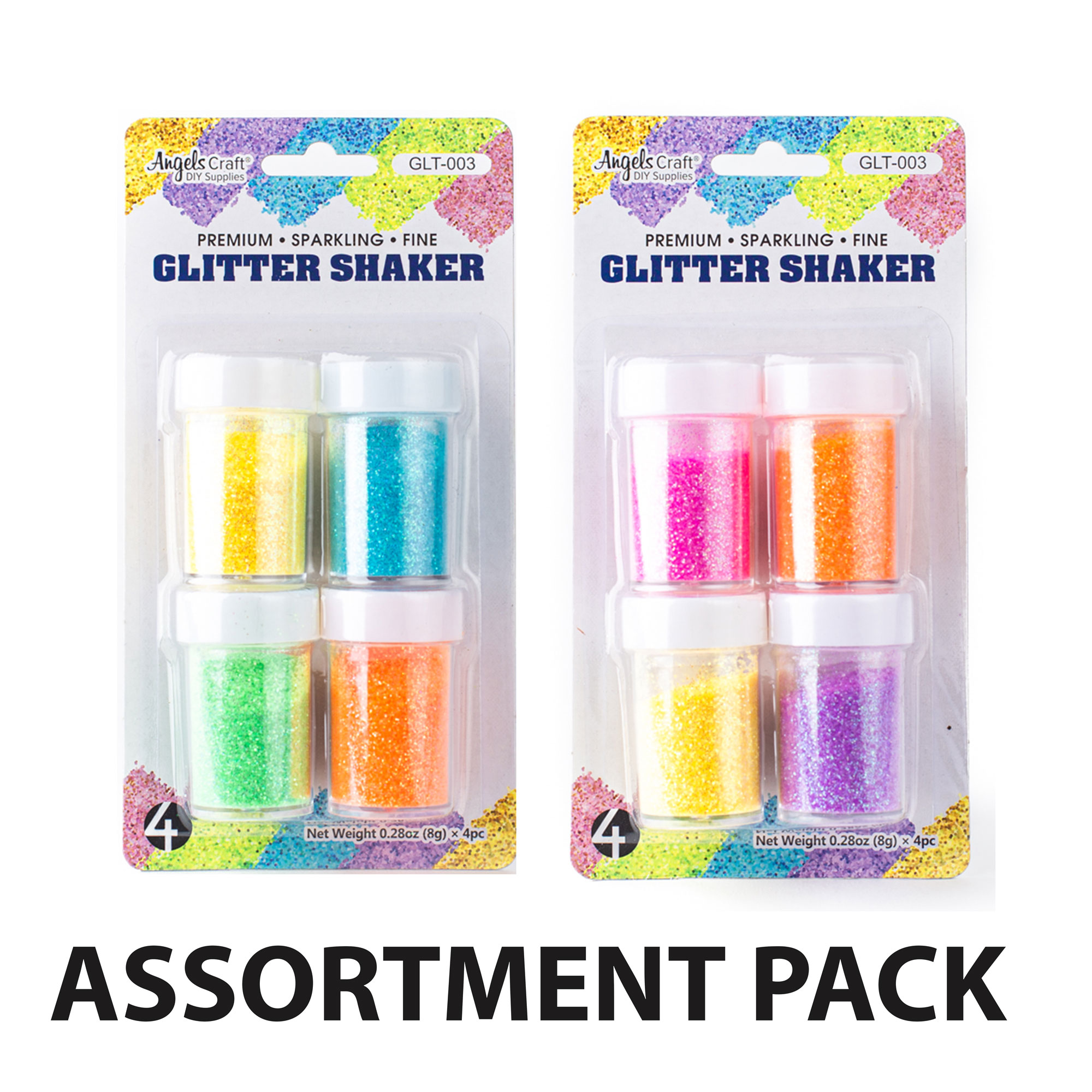 GLT-003 GLITTER SHAKER, 8G. 4CT. NEON COLORS