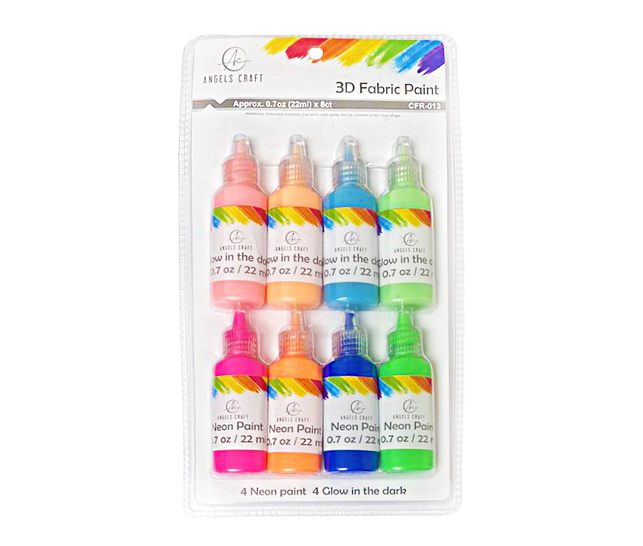8ct. Fabric Paint 3D, 4 Neon paint, 4 Glow in the dark, 0.7oz(22ml) each, 4dz/Case