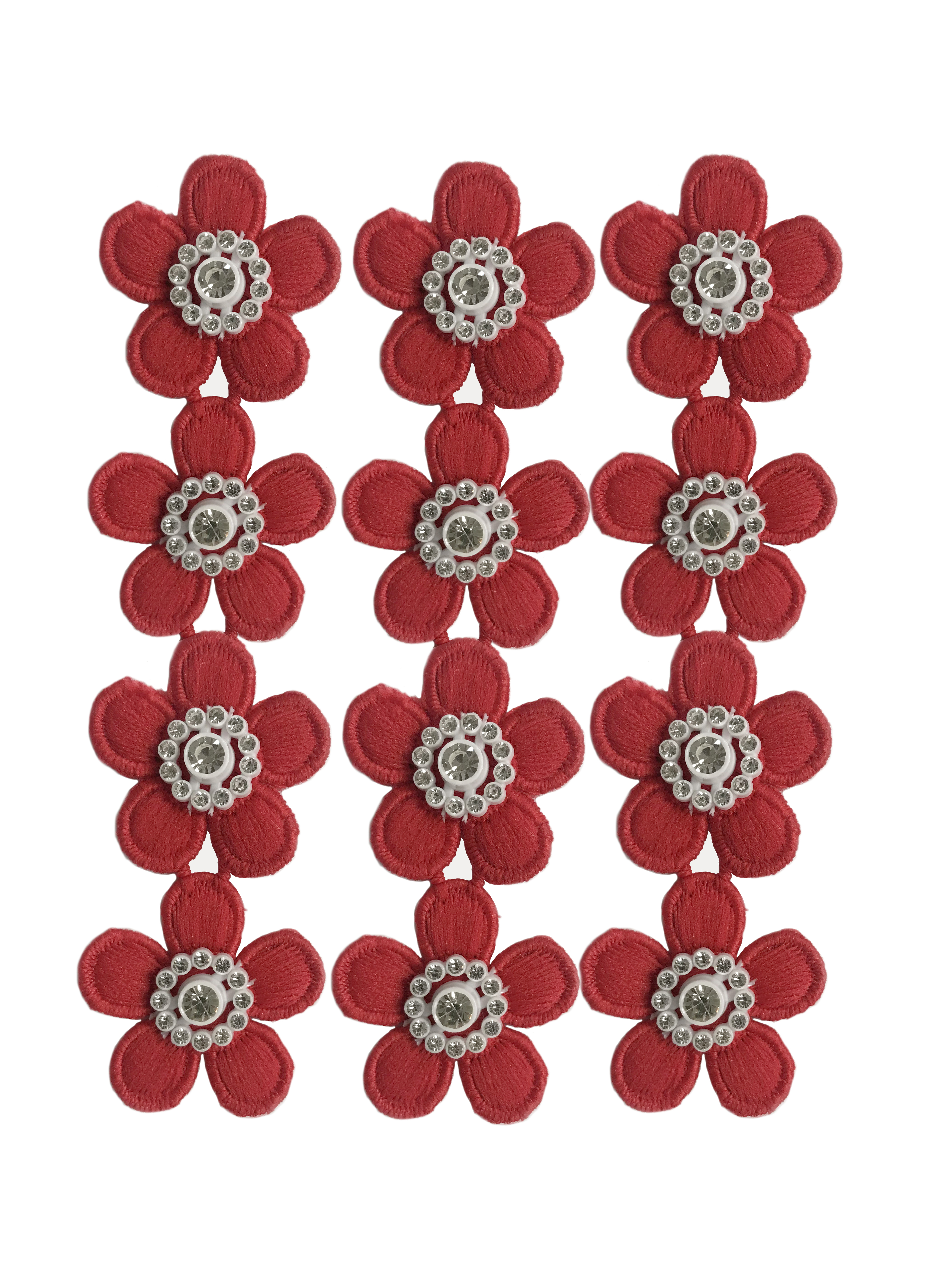 Fabric Flower Patch w/Stone-Red, 5.5", 3ct. 30dz/Case