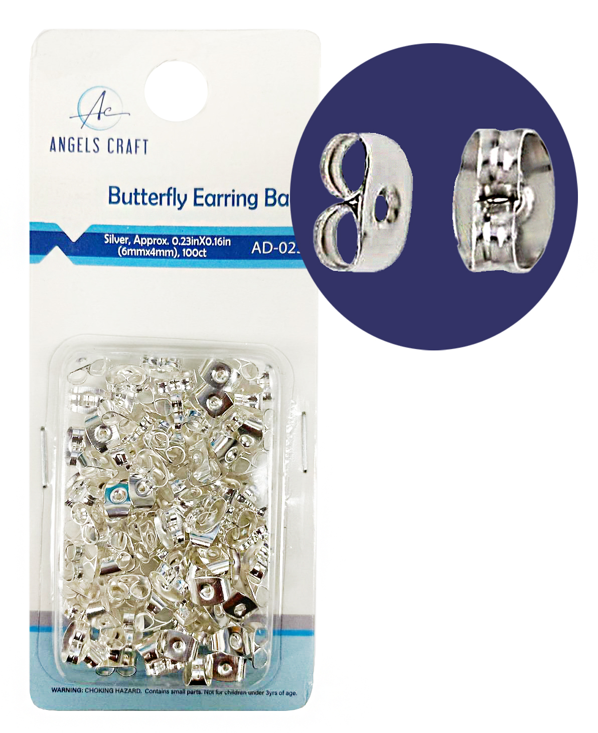 100 CT. Accessories-Earring Butterfly Back- Silver color