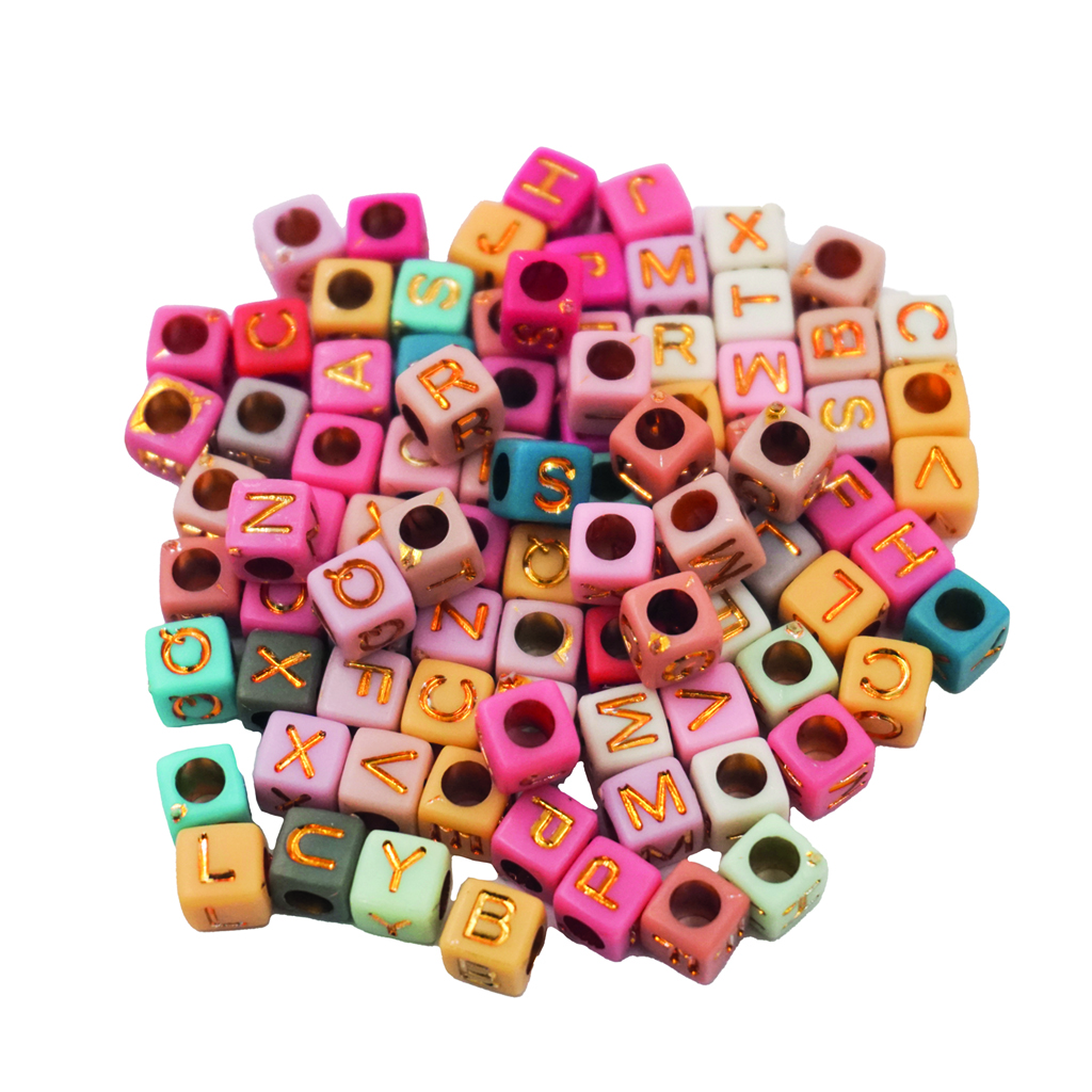35g. Alphabet Bead - Squared, Neutral Color Assortment, 6mm