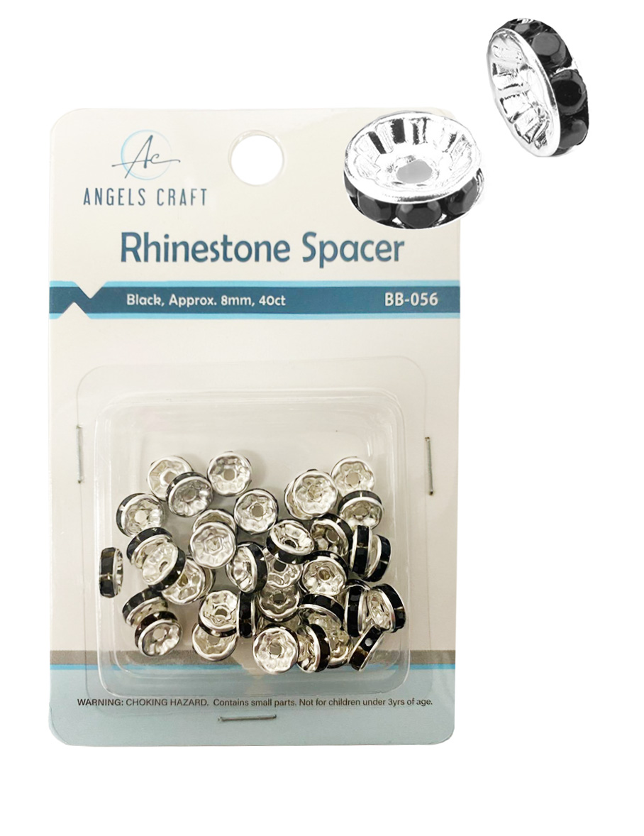 Rhinestone Spacer-Silver with Black Stone, 40ct, 8mm